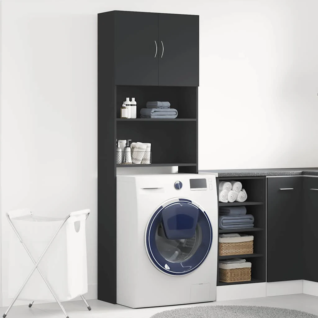 Mobile Lavatrice Nero 64x24x190 cm in Legno Multistrato